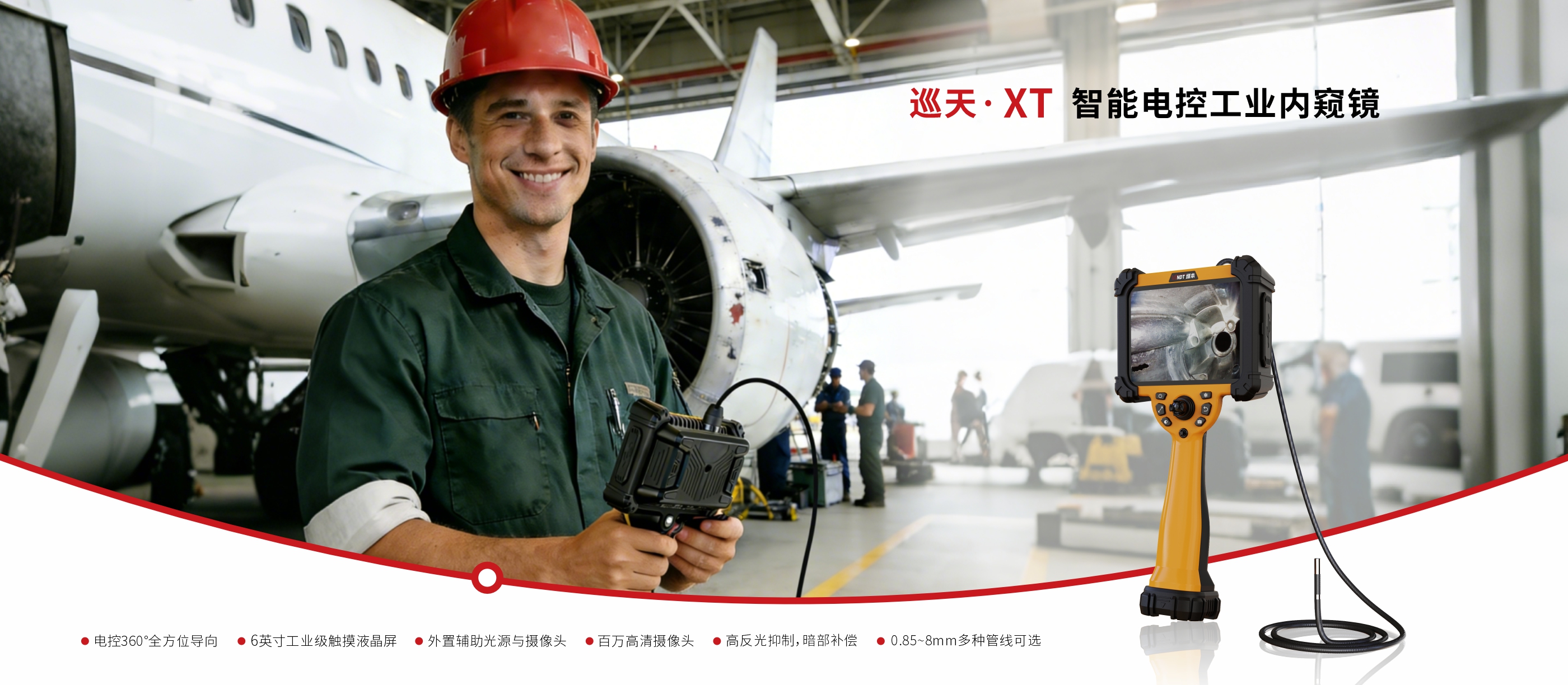 Y系列6mm直徑工業(yè)內(nèi)窺鏡,搭載智能操控系統(tǒng),6mm探頭直側(cè)一體雙鏡頭,后置LED光纖導(dǎo)光,照明更清晰,耐磨鎢絲管可360°全方位旋轉(zhuǎn),航空制造業(yè)檢測(cè)專(zhuān)用,可檢測(cè)飛機(jī)活塞發(fā)動(dòng)機(jī)氣缸內(nèi)的積炭、燃燒室壁的橫截面以及門(mén)閥的情況,還可檢查渦輪發(fā)動(dòng)機(jī)的渦輪葉片、噴嘴導(dǎo)流葉片,以及外來(lái)物損傷。