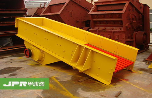 振動給料機在砂石生產(chǎn)線中可為破碎機連續(xù)均勻地喂料避免破碎機受料口的堵塞。振動給料機機是利用振動器中的偏心塊旋轉(zhuǎn)產(chǎn)生離心力,使篩廂、振動器等可動部分作強制的連續(xù)的圓或近似圓的運動。物料則隨篩廂在傾斜的篩面上作連續(xù)的拋擲運動,并連續(xù)均勻地將物料送至受料口內(nèi)。