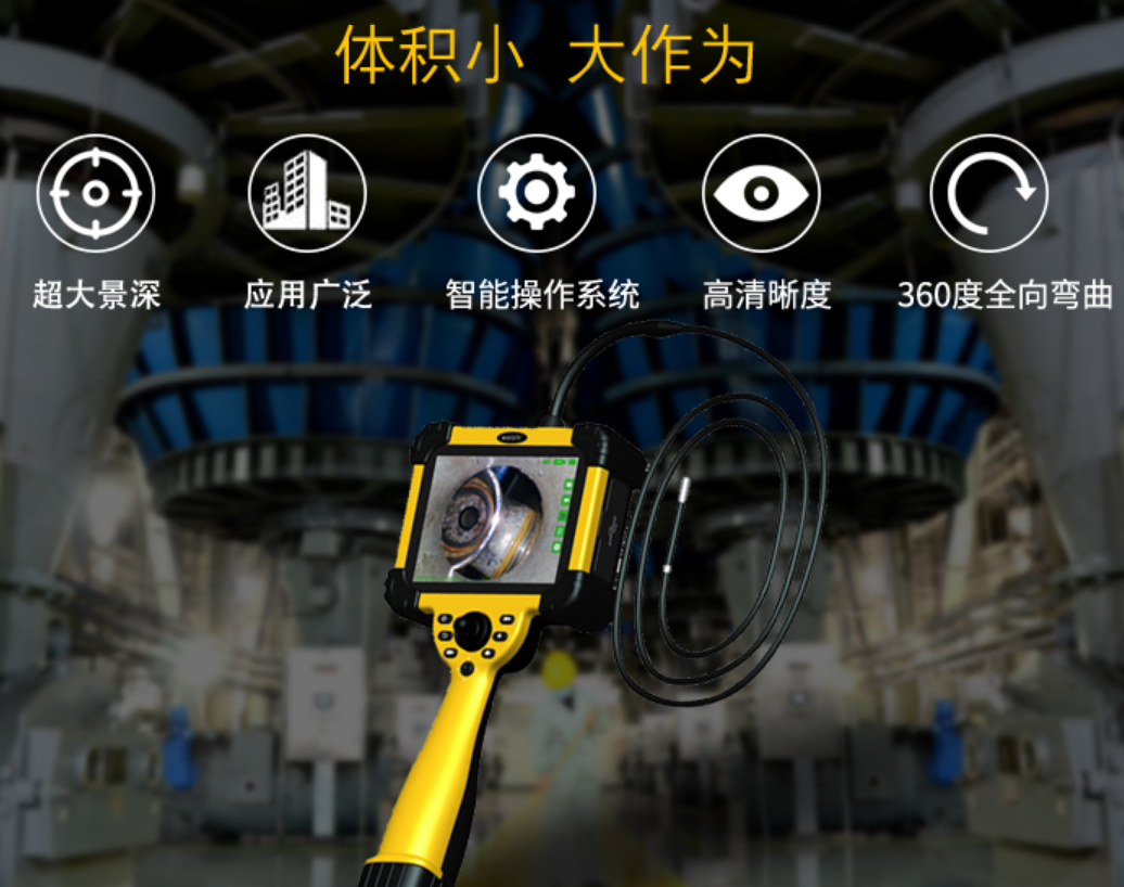 微視WS-Y系列360°任意向高清數(shù)碼工業(yè)內(nèi)窺鏡采用國(guó)際領(lǐng)先機(jī)械式操作桿技術(shù),可實(shí)現(xiàn)探頭360°全方位旋轉(zhuǎn),任何復(fù)雜的檢測(cè)環(huán)境都可對(duì)應(yīng),并且產(chǎn)品防油、防水、防腐蝕等設(shè)計(jì),無(wú)論是在水下,還是管道都可以體現(xiàn)出其檢測(cè)功能的卓越;產(chǎn)品小巧便攜,集拍照、錄像等功能于一體;并且兼?zhèn)渑恼?,調(diào)節(jié)亮度,使被測(cè)物更清晰呈現(xiàn);數(shù)據(jù)存儲(chǔ)簡(jiǎn)單方便多種方式選擇,聲音記錄,通過(guò)音頻進(jìn)行檢測(cè)部位的注釋等功能于一體,是當(dāng)今工業(yè)內(nèi)窺鏡檢測(cè)行業(yè)中獨(dú)樹(shù)一幟的搞斷產(chǎn)品!微視WS-Y系列工業(yè)內(nèi)窺鏡采用IP7防水標(biāo)準(zhǔn)設(shè)計(jì),鏡頭外殼采用不銹鋼;在管道中進(jìn)行檢測(cè),在環(huán)境比較黑暗或光線不足的地方,微了解決這個(gè)問(wèn)題,微視WS-Y系列工業(yè)內(nèi)窺鏡探頭采用行業(yè)內(nèi)獨(dú)特的光纖傳輸照明,8節(jié)亮度調(diào)節(jié),并且采用高分辨工業(yè)級(jí)液晶顯示器實(shí)時(shí)觀察內(nèi)部情況;圖像清晰、操作簡(jiǎn)單、有效探測(cè)距離長(zhǎng)、使用范圍廣、并且可以和電腦、平板等連接實(shí)現(xiàn)存儲(chǔ)的優(yōu)點(diǎn)。